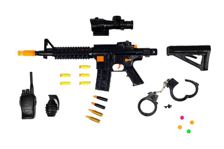 مجموعه پلیس ام 16 مدل کماندو یک ست کامل و هیجان انگیز برای کودکان علاقهمند به بازی های پلیسی و نقش آفرینی است. این مجموعه شامل تفنگ ام 16 دوربین دار، بی سیم بزرگ، نارنجک، دستبند و صفحه نشانه گیری بوده و تجربه ای واقعی، مهیج و بی خطر از بازی های پلیسی را برای کودکان فراهم میکند. طراحی جذاب، کیفیت ساخت بالا و جزئیات واقع گرایانه این محصول، آن را به گزینه ای عالی برای هدیه، بازی های گروهی و سرگرمی روزانه تبدیل کرده است.