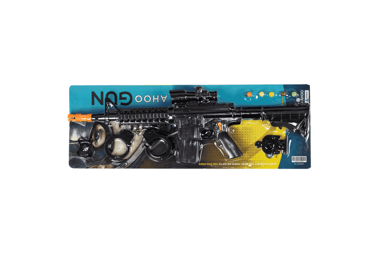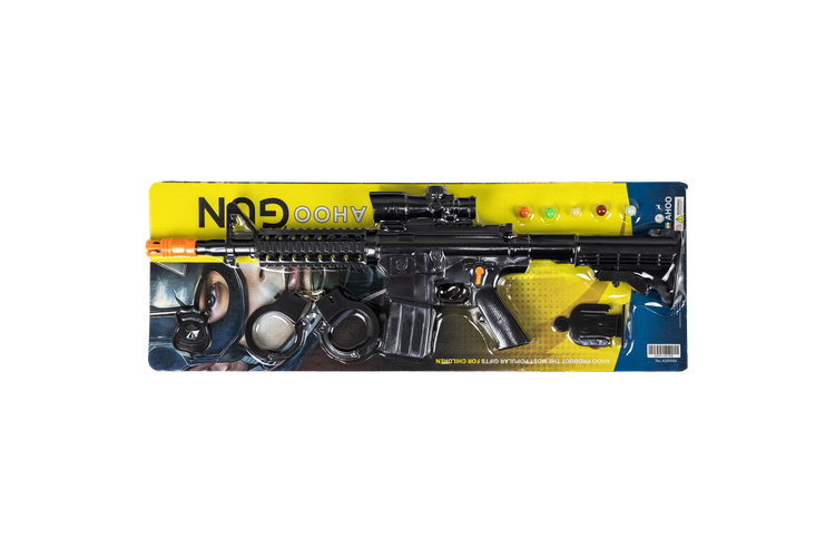 تفنگ ام 16 دوربین دار، دستبند، نشان پلیس، آدمک هدف