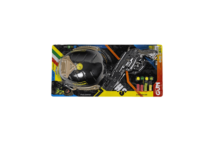 Police Revolver Toy Set with Military Helmet