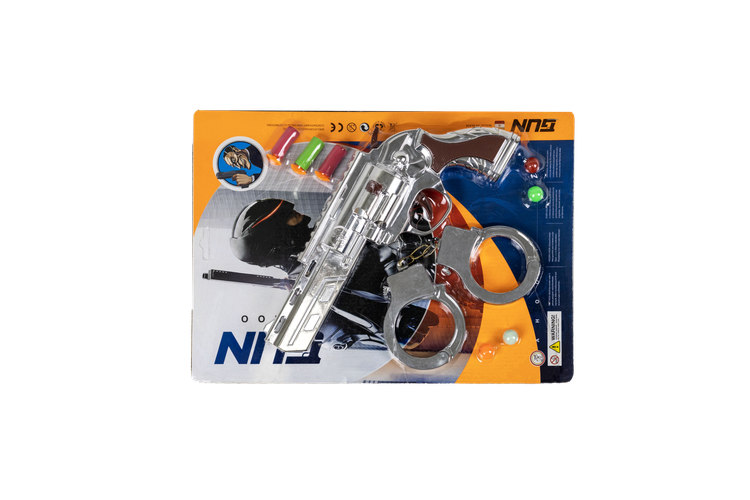 Police Revolver Toy Set with Coated Handcuffs