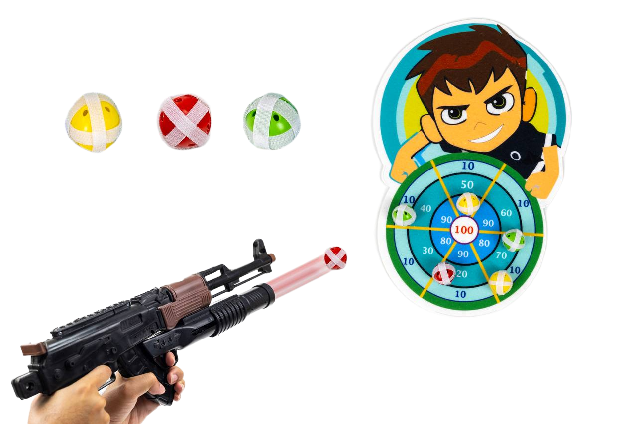 AK Toy Gun with Rocket Launcher and Sticky Target – Cellophane Pack