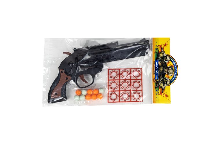 Two-in-One Revolver Toy: Ball Shooter & Cap Gun – Cellophane Pack